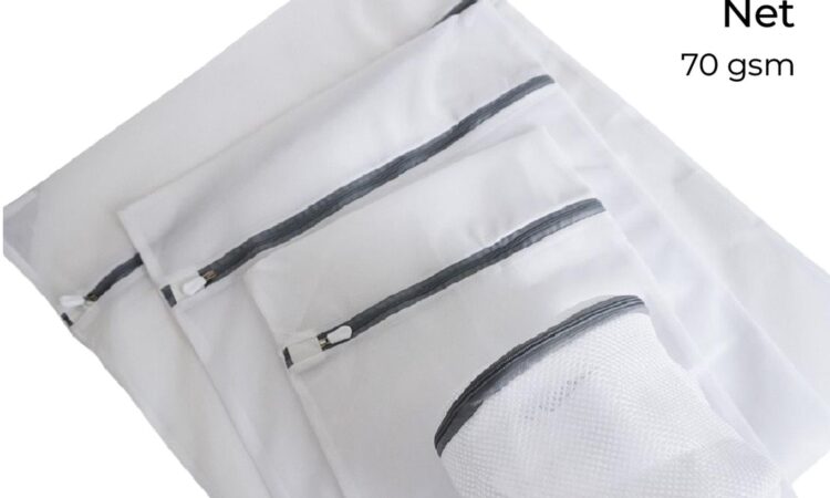 - Polyester 70 gsm: Polyester adalah serat sintetis yang kuat dan tahan lama. “70 gsm” (gram per square meter) adalah satuan yang mengukur kepadatan kain; angka ini menunjukkan ketebalan material yang ideal untuk kantong laundry, tidak terlalu tipis maupun terlalu kaku.