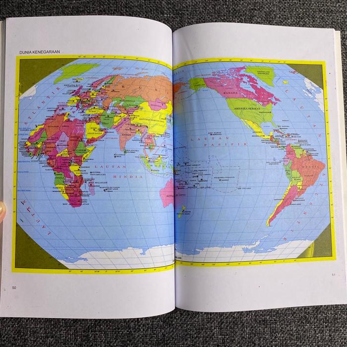 Jelajahi kekayaan nusantara dan dunia dengan Atlas Indonesia dan Dunia edisi terbaru. Buku ini telah diperbarui dengan peta provinsi termuda Indonesia, Kalimantan Utara, menjadikannya referensi paling akurat yang mencakup seluruh 34 provinsi.