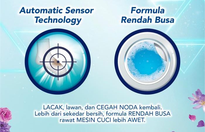 - Automatic Sensor Technology: Teknologi dalam sabun cuci yang bekerja dengan cerdas melacak keberadaan noda, lalu secara efektif melawan dan mencegahnya kembali menempel pada serat kain, menjamin kebersihan yang menyeluruh.