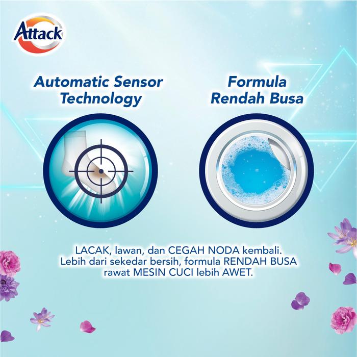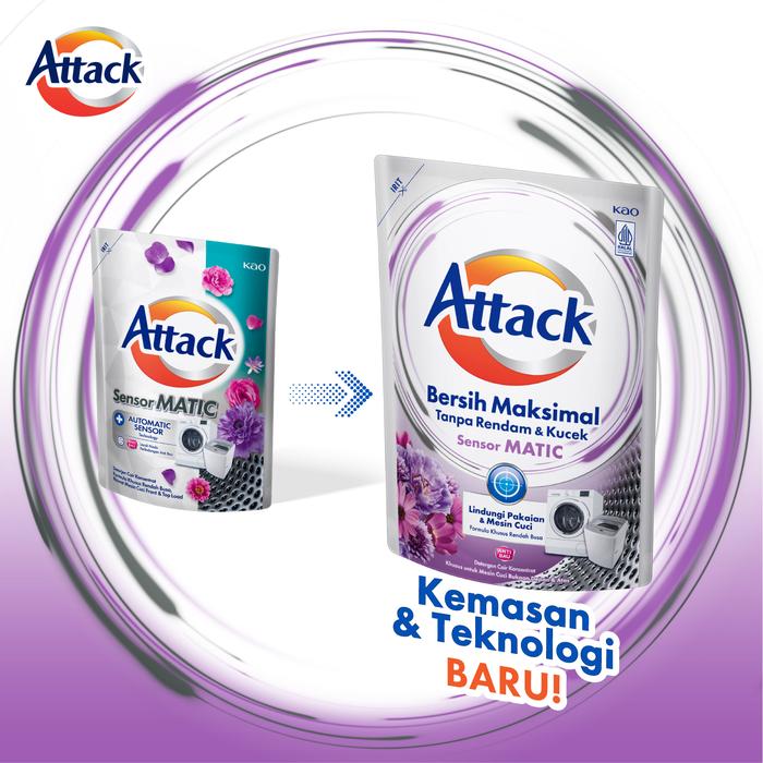 Dapatkan kemasan ekonomis berisi 3 botol Attack Liquid Sensor Matic 1200mL. Solusi cerdas untuk cucian lebih bersih dan higienis.