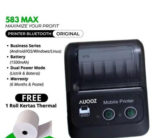 | Fitur Utama | Cetak cepat (58mm), port micro USB (charger HP bisa dipakai), baterai tahan lama. |