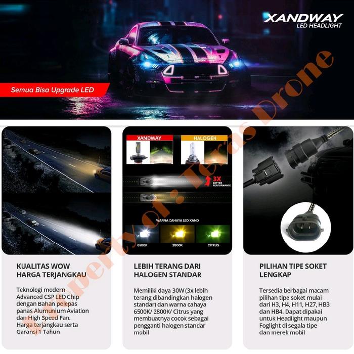 | Tipe Soket | H1, H3, H4, H7, H11, H27, HB3, HB4 |