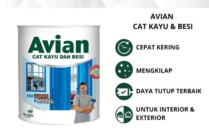 Tampilkan hasil maksimal pada setiap proyek Anda dengan Avian Synt Cat Kayu dan Besi. Cat berbahan alkyd premium ini memberikan hasil akhir mengkilap sempurna dengan daya tutup luar biasa. Dirancang khusus untuk melindungi permukaan kayu, besi, aluminium, dan besi galvanis dari cuaca ekstrem, karat, jamur, serta rayap. Sangat ideal untuk aplikasi pada pintu, jendela, kusen, dan rolling door, baik untuk interior maupun eksterior.