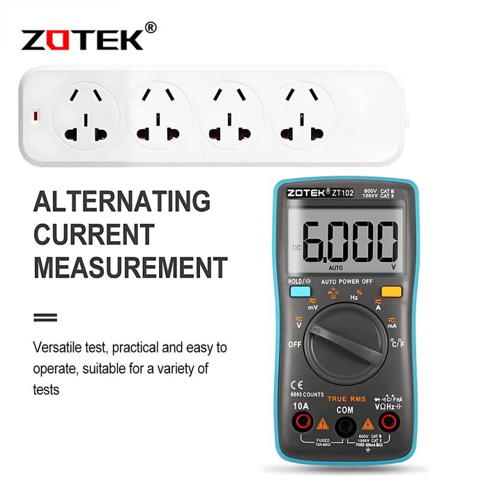 Alat ukur multimeter digital yang ringkas dan andal untuk segala kebutuhan elektrikal Anda. Dirancang untuk teknisi profesional dan hobbyist, ZT102 memberikan akurasi tinggi dengan portabilitas maksimal.