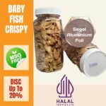 Rasakan sensasi renyah dan gurih dari Baby Fish Crispy Toples 200gr, camilan seafood kering yang dibuat dengan bahan berkualitas tinggi. Terbuat dari ikan kecil segar (baby fish) yang digoreng hingga crispy, lalu dibalut bumbu rempah khas Indonesia tanpa tambahan MSG (Monosodium Glutamat). Cocok untuk menemani momen santai, acara keluarga, atau sebagai teman nasi.