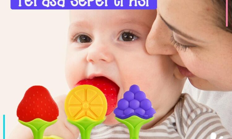 Baby Fruit Teether adalah mainan gigitan bayi berbentuk buah yang dirancang khusus untuk meredakan gusi gatal sekaligus melatih sensorik dan motorik halus bayi. Terbuat dari bahan BPA FREE dan material food grade 100% aman, teether ini membantu merangsang pertumbuhan gigi tanpa risiko melukai gusi.