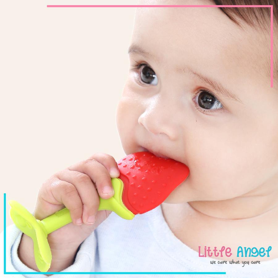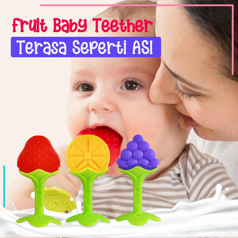 Baby Fruit Teether adalah mainan gigitan bayi berbentuk buah yang dirancang khusus untuk meredakan gusi gatal sekaligus melatih sensorik dan motorik halus bayi. Terbuat dari bahan BPA FREE dan material food grade 100% aman, teether ini membantu merangsang pertumbuhan gigi tanpa risiko melukai gusi.