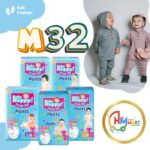 - Type Celana: Merujuk pada model pakaian yang berbentuk seperti celana, dalam hal ini adalah diaper pants atau popok celana yang dirancang untuk mudah dipakai dan dilepas seperti celana pada umumnya.