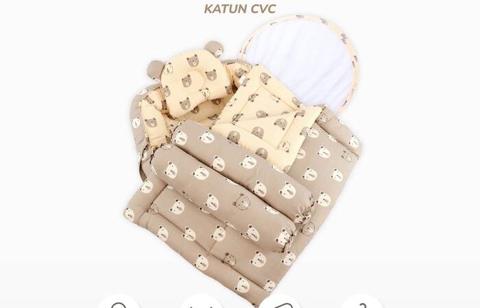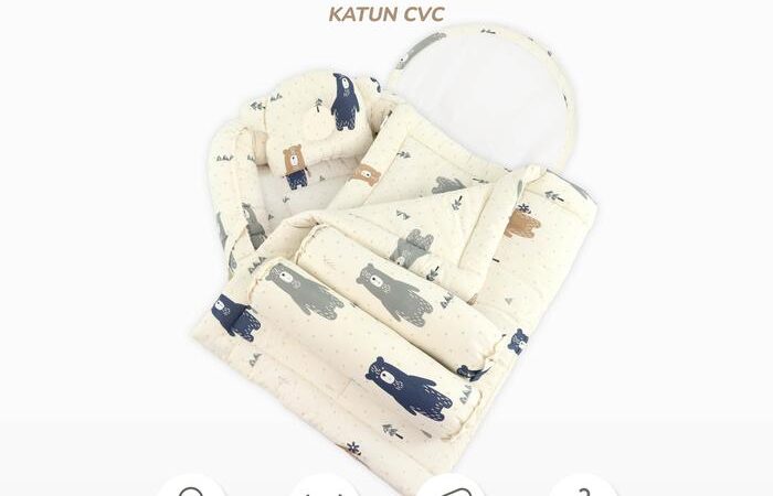 • Katun CVC: Jenis kain yang merupakan blend antara Cotton (serat kapas) dan Viscose, biasanya dengan komposisi 60% kapas dan 40% viscose. Kain ini dikenal memiliki permukaan yang halus, lembut, dan lebih mudah menyerap keringat dibanding kain polyester murni, sehingga sangat nyaman untuk kulit bayi.