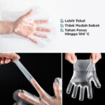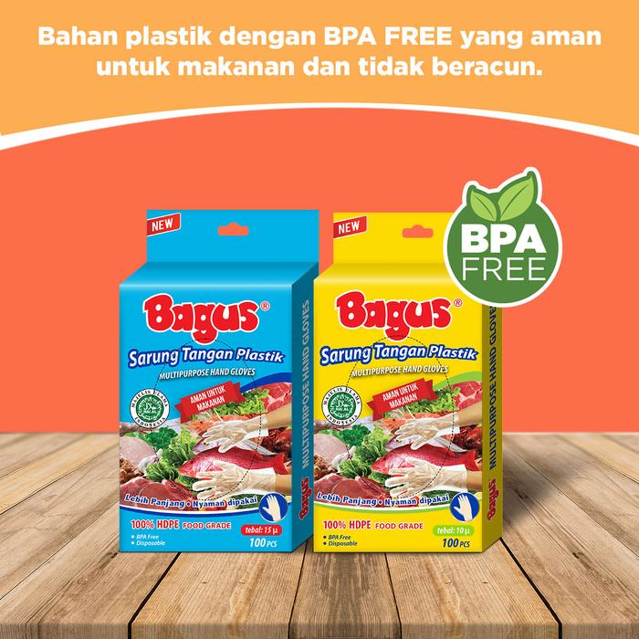 Lindungi tangan Anda dengan BAGUS Sarung Tangan Plastik yang dirancang untuk aktivitas sehari-hari. Terbuat dari bahan foodgrade yang halal dan aman untuk kontak langsung dengan makanan, sarung tangan ini menjamin kehigienisan dalam pengolahan bahan pangan. Produk ini tahan panas hingga suhu 100°C, membuatnya sangat ideal untuk memasak, membuat kue, serta kegiatan lain yang memerlukan perlindungan dari suhu tinggi.