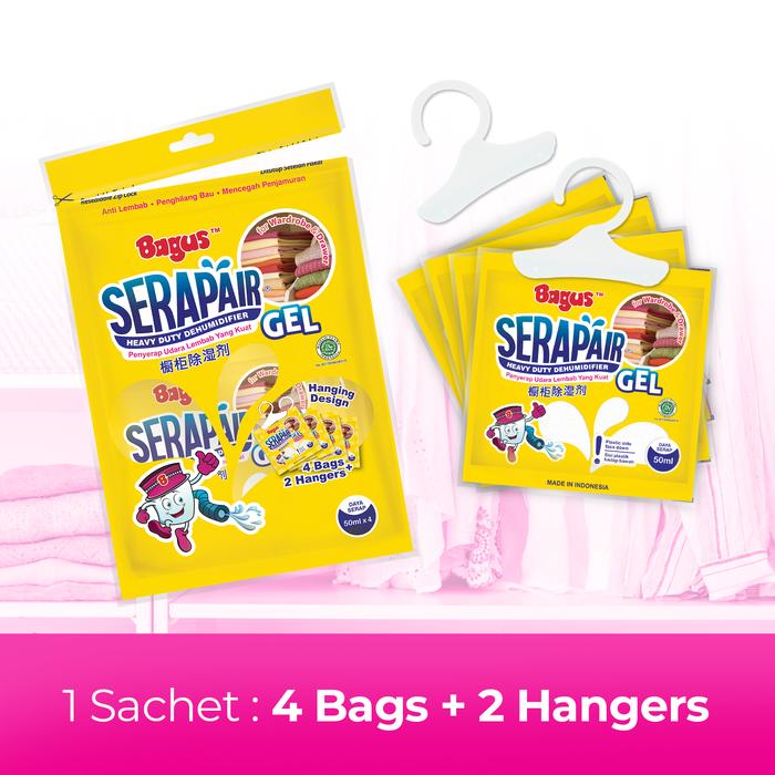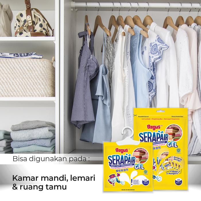Kelembapan udara berlebih dapat merusak barang berharga seperti kamera, sepatu kulit, dokumen, atau peralatan elektronik. Di Indonesia, tingkat kelembapan sering melebihi 60%, memicu tumbuhnya jamur, bau tidak sedap, dan kerusakan material. Bagus Serapair Hanger Gel hadir sebagai solusi praktis untuk mengontrol kelembapan di ruang tertutup seperti lemari, laci, atau kotak penyimpanan.