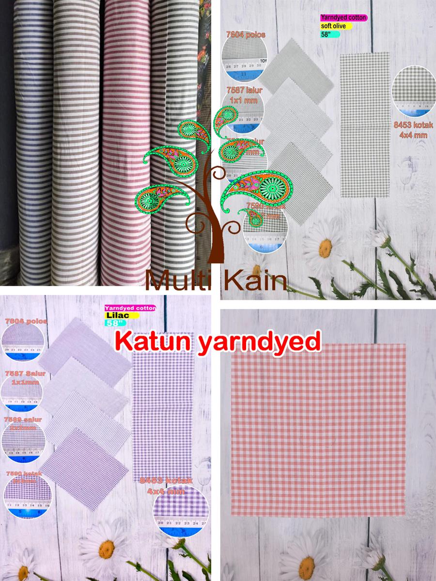 - Cek stok via format: "yarndyed [no design] [warna] [quantity]", contoh: yarndyed 7483 biru 9meter.
