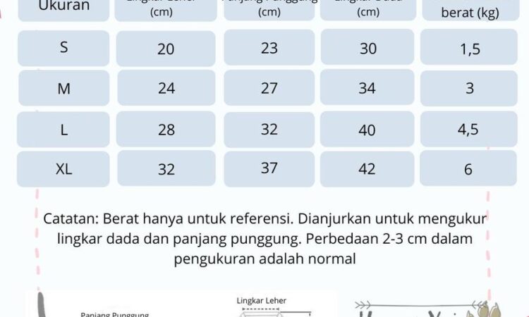- Pesanan dikirim sesuai list orderan. Tidak menerima pengembalian/penukaran akibat kesalahan pemilihan size/warna. Pastikan mengukur hewan berdasarkan panduan ukuran sebelum membeli.