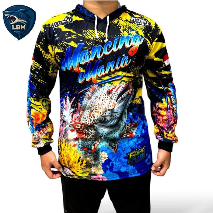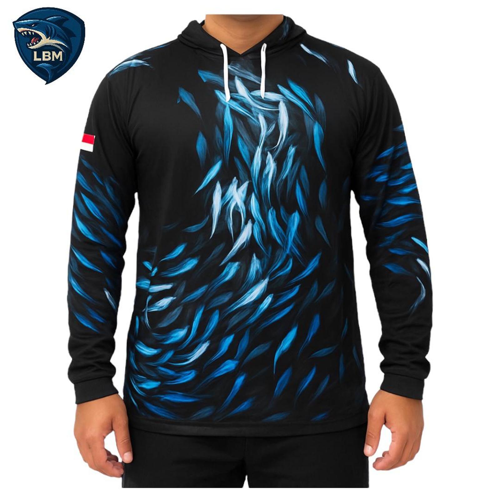 Fitur unggulannya adalah hoodie atau penutup kepala yang terintegrasi, memberikan perlindungan ekstra dari sengatan terik matahari langsung dan panasnya cuaca di siang hari. Desainnya yang sporty dan fungsional cocok untuk segala jenis aktivitas memancing maupun kegiatan alam lainnya seperti hiking, camping, atau touring.