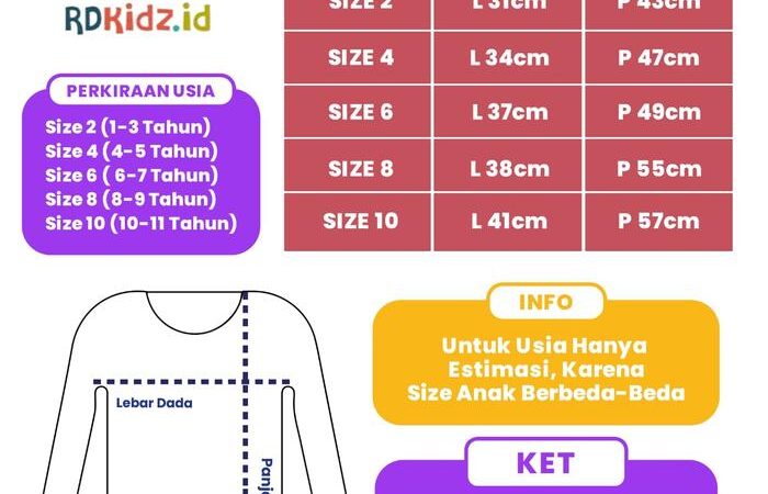 Catatan: Ukuran usia hanya estimasi. Sesuaikan dengan tinggi/berat anak.