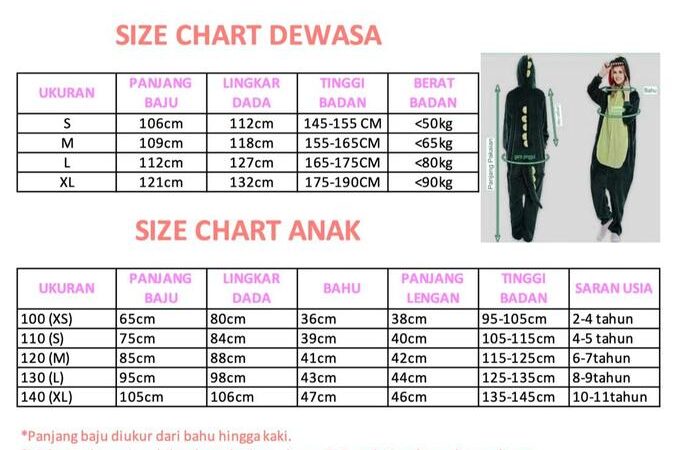 | Ukuran Dewasa | Panjang Baju | Lingkar Dada | Tinggi Badan yang Direkomendasikan |
