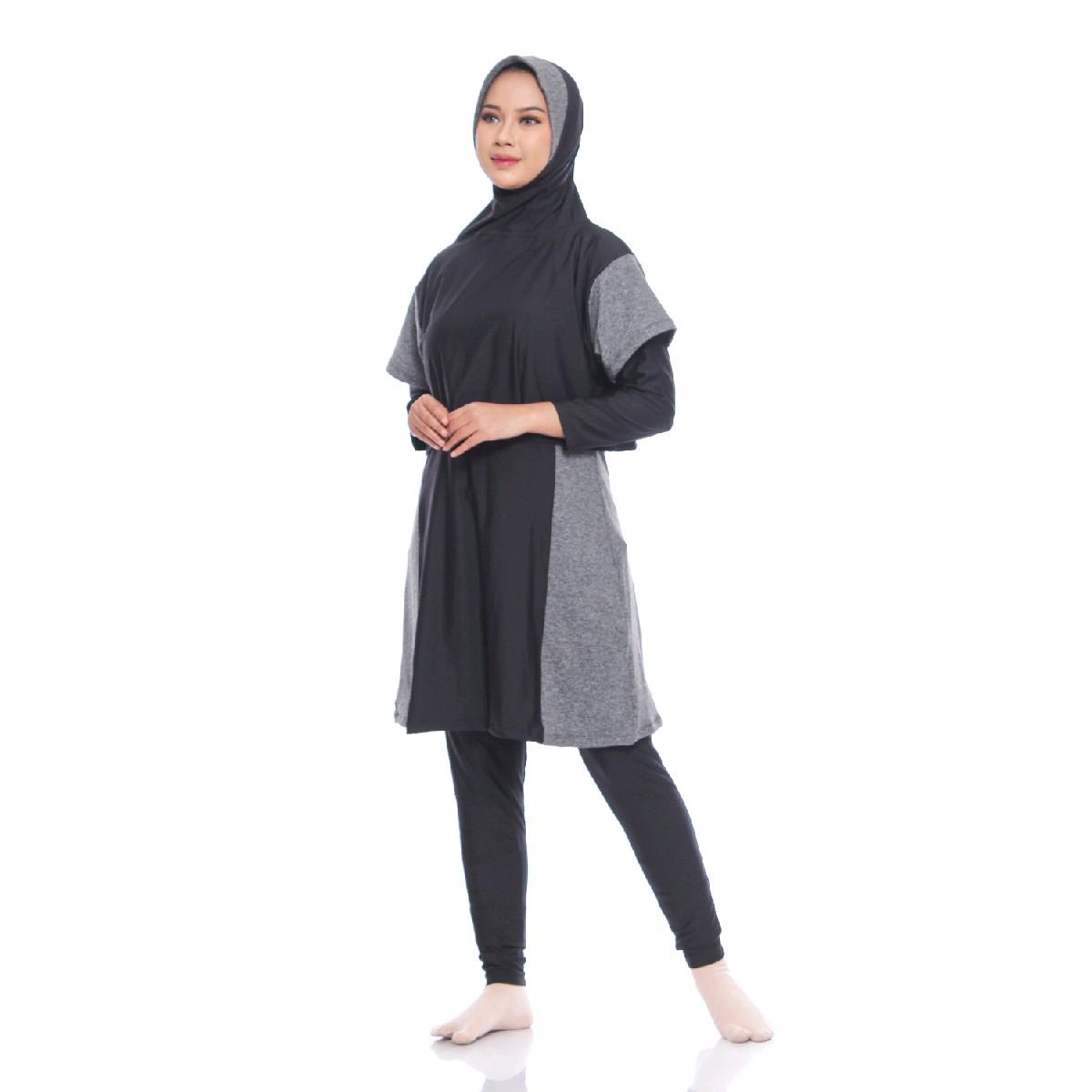 Set busana ini terdiri dari 3 piece lengkap: hijab, baju atasan, dan celana. Hijab dilengkapi lengan terintegrasi agar tidak mudah terangkat oleh angin atau air. Desainnya praktis dengan tali pengikat di samping baju untuk disambungkan ke celana, memastikan seluruh outfit tetap pada tempatnya selama Anda bergerak.