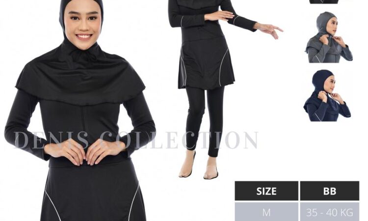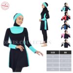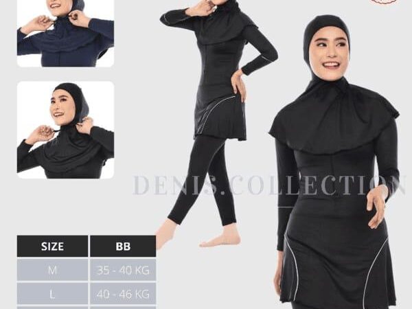 Desain modern dengan penutupan maksimal, cocok untuk wanita dewasa yang ingin berenang tetap syar’i. Terdiri dari 3 bagian lengkap: baju atasan, hijab terintegrasi, dan celana panjang dalam. Dibuat dari bahan spandek poliester premium yang elastis, nyaman, dan cepat kering. Jahitan double stitching memperkuat konstruksi produk untuk ketahanan jangka panjang. Tersedia dalam ukuran M hingga 6L, mendukung berbagai bentuk tubuh.