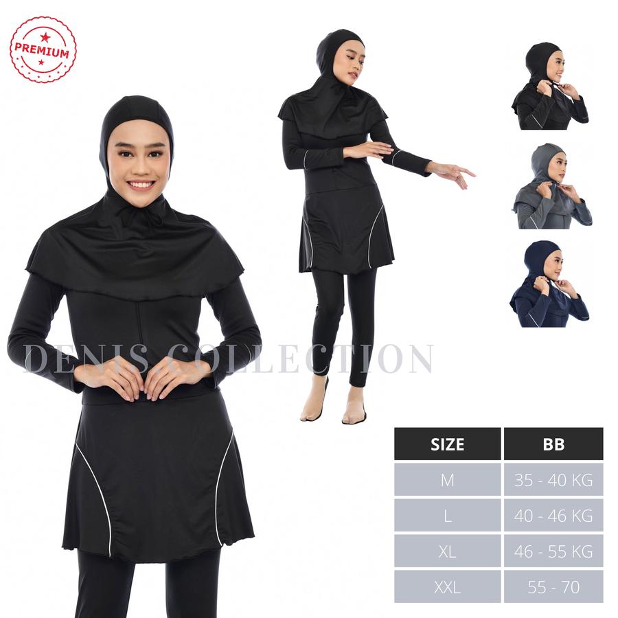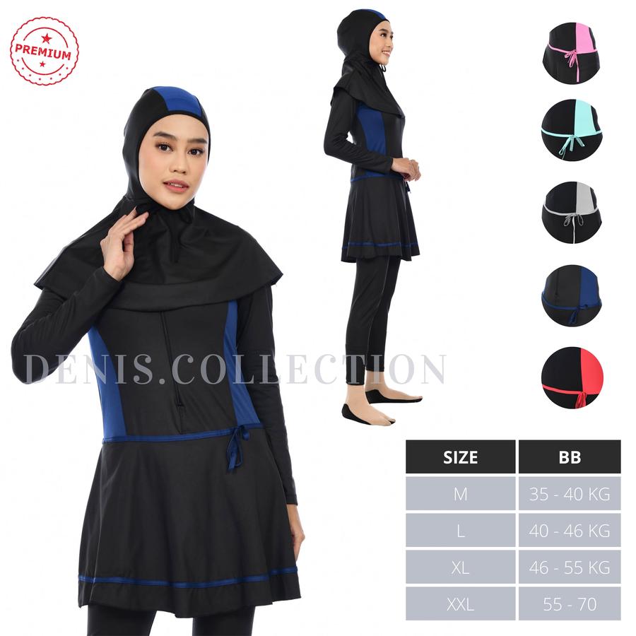 Desain modern dengan penutupan maksimal, cocok untuk wanita dewasa yang ingin berenang tetap syar’i. Terdiri dari 3 bagian lengkap: baju atasan, hijab terintegrasi, dan celana panjang dalam. Dibuat dari bahan spandek poliester premium yang elastis, nyaman, dan cepat kering. Jahitan double stitching memperkuat konstruksi produk untuk ketahanan jangka panjang. Tersedia dalam ukuran M hingga 6L, mendukung berbagai bentuk tubuh.