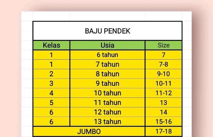 | Tersedia Berbagai Ukuran | Tersedia pilihan ukuran lengkap untuk kelas 1-6 (usia 7-13 tahun), memudahkan pemilihan. |