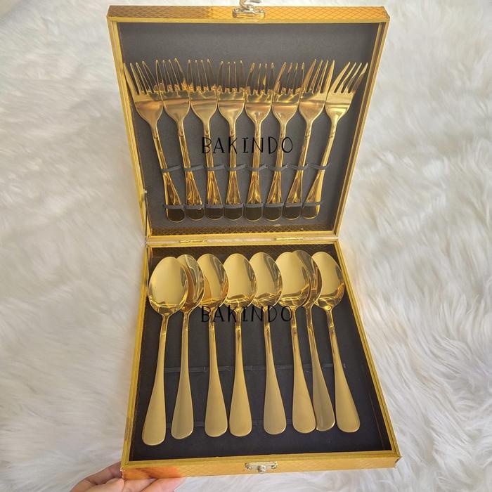 | Set 16 Pcs (8 Sendok, 8 Garpu) | ± 23 cm x 26 cm x 4.8 cm | – | Gold, Silver |