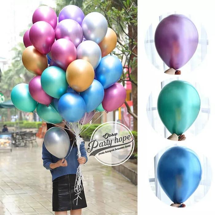 - Metalik Chrome: Efek finishing pada permukaan balon yang menyerupai logam chromium, menghasilkan tampilan sangat mengkilap, reflektif, dan mewah.