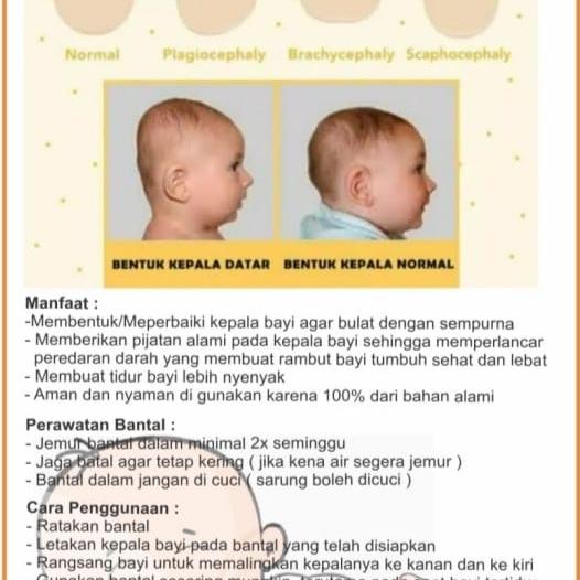 | Manfaat | Membentuk & memperbaiki kepala peyang, menstimulasi pertumbuhan rambut, meningkatkan kenyamanan tidur bayi. |