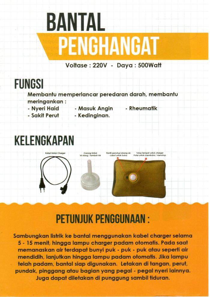 | Harga & Inklusif | – 1x Bantal Penghangat – 1x Charger – 1x Corong Pengisi Air |