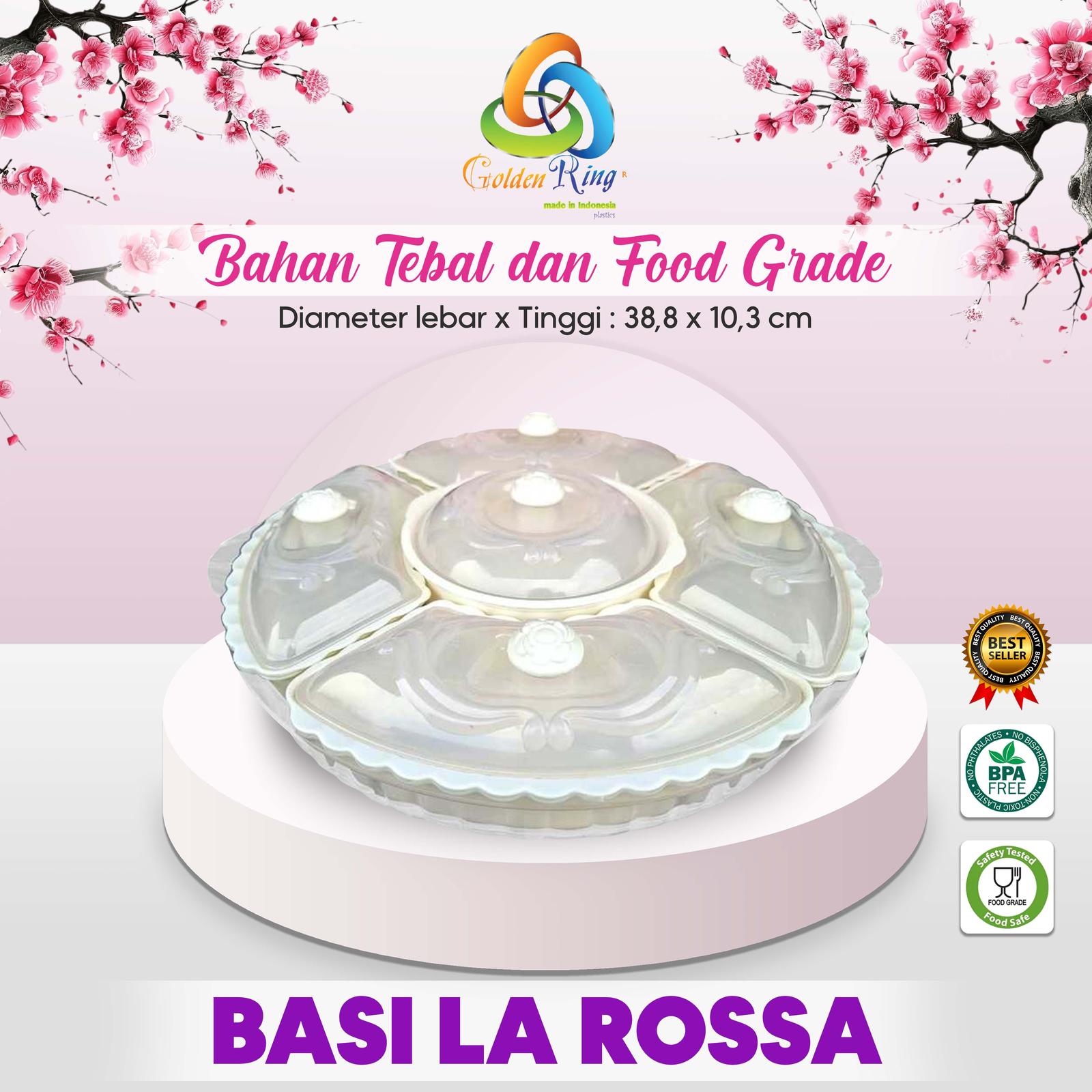 Tampilkan hidangan kue, camilan, atau buah-buahan Anda dengan gaya yang lebih mewah dan terjaga kebersihannya. Basi Prasmanan La Rossa hadir dengan desain bundar yang elegan, dilengkapi tutup kaca bening sehingga makanan terlindung dari debu dan lalat namun tetap dapat dinikmati keindahannya.