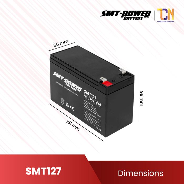 Baterai SMT Power 12V 7.5Ah dirancang khusus untuk memberikan performa terbaik sebagai sumber daya uninterruptible power supply (UPS), sistem alarm keamanan, panel surya skala kecil, dan berbagai aplikasi elektronik lainnya. Dengan teknologi VRLA, baterai ini bebas perawatan, aman dari kebocoran, dan siap pakai.