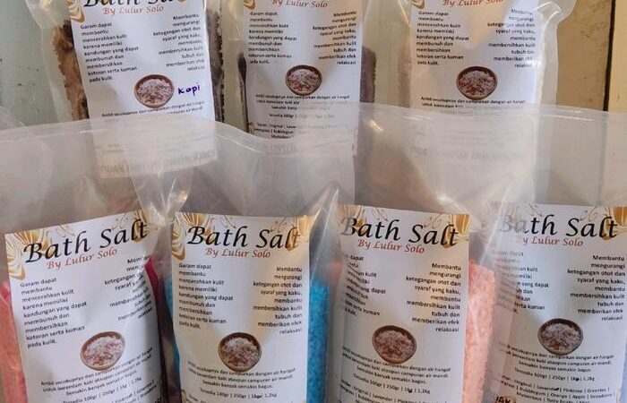 - EPSOM Salt: Jenis garam yang kaya akan magnesium sulfat, dikenal dengan manfaatnya untuk meredakan nyeri otot, mengurangi stres, dan detoksifikasi kulit.