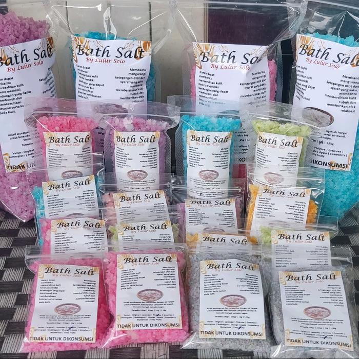 - EPSOM Salt: Jenis garam yang kaya akan magnesium sulfat, dikenal dengan manfaatnya untuk meredakan nyeri otot, mengurangi stres, dan detoksifikasi kulit.