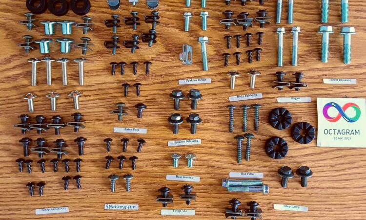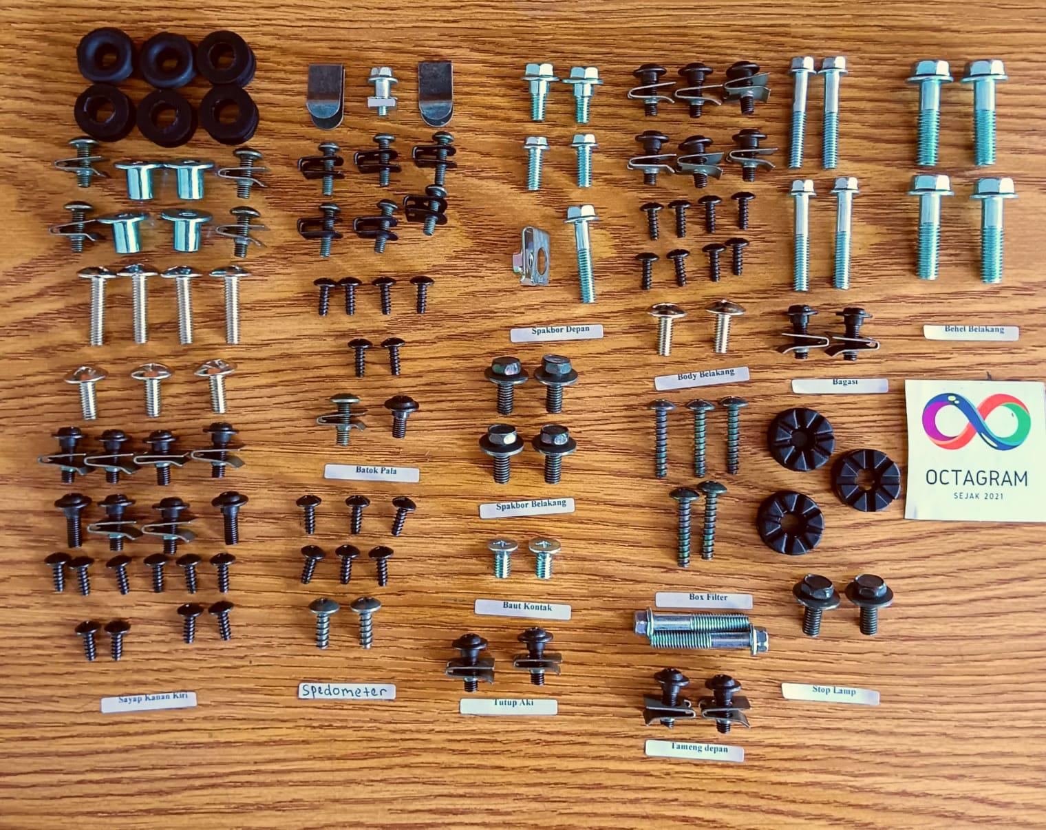 • Full Set: Satu set komplit berisi semua baut yang diperlukan untuk merakit atau mengganti seluruh body motor.