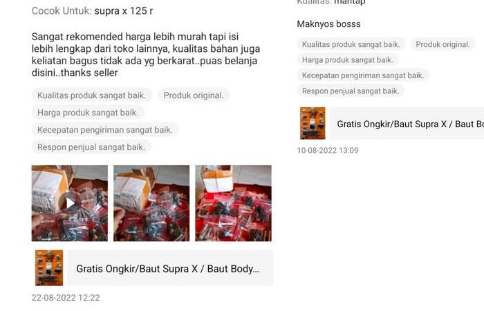 Dapatkan sekarang baut body full set untuk motor Supra X 125 model Batman. Komplit dan original, cocok untuk penggantian atau restorasi.