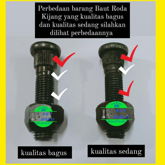 Dapatkan baut roda dengan kualitas material terbaik yang lebih kuat dan tahan karat. Perbedaan kualitas jelas terlihat pada gambar. Bagi yang mengutamakan budget, tersedia juga varian standar. Silakan pilih sesuai kebutuhan Anda.