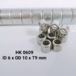 - Needle Roller Bearing (Bantalan Jarum): Jenis rolling bearing yang menggunakan elemen rol berbentuk jarum, sangat tipis dan panjang. Dirancang untuk menangani beban radial yang tinggi dalam ruang terbatas, membuatnya ideal untuk aplikasi seperti handle rem motor. Kode “HK” menandakan jenis needle roller bearing dengan rumah tertutup.
