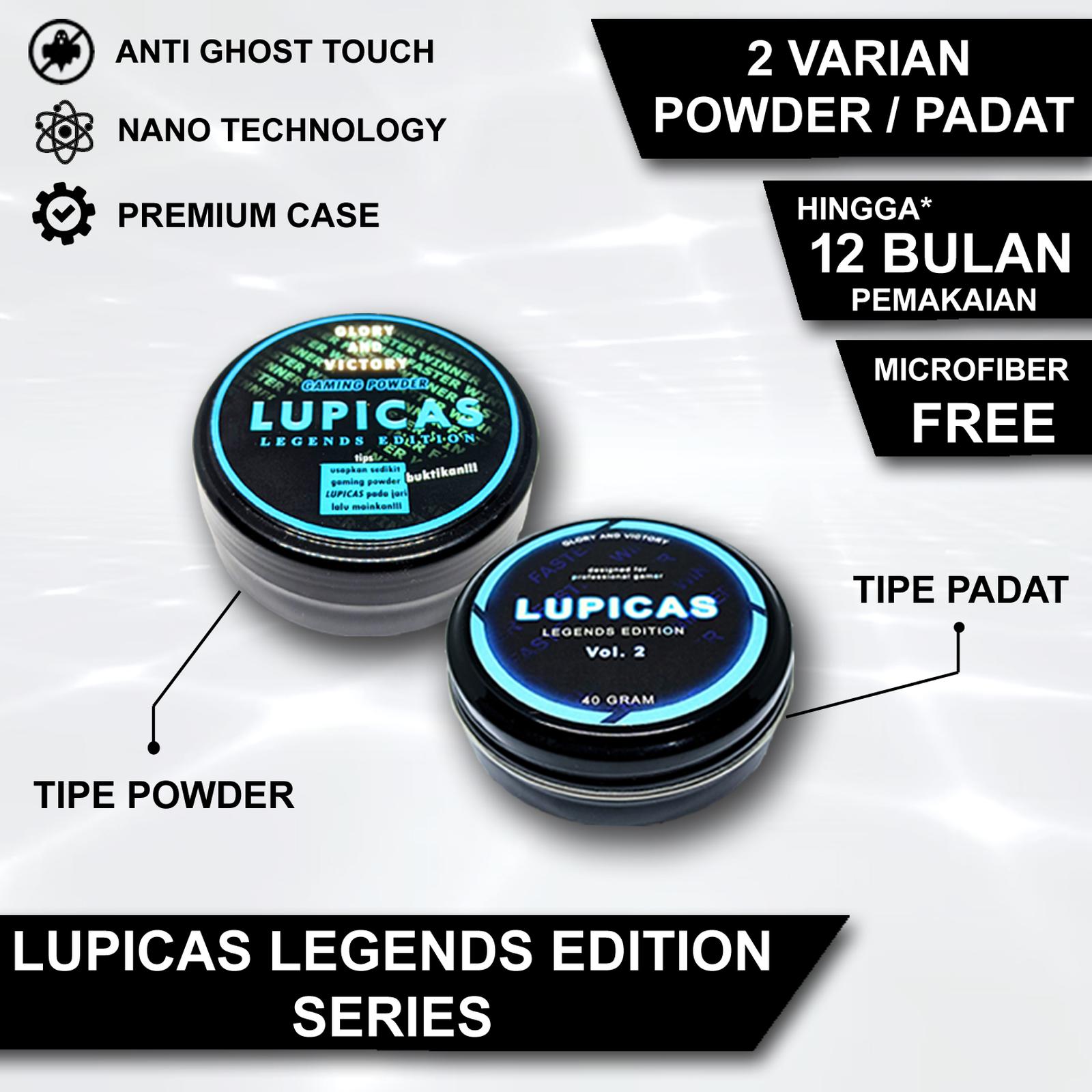 LUPICAS LEGENDS PRO VOL.1PowderTekstur sangat halus, mudah diaplikasikan, dan menyerap minyak dengan cepat.