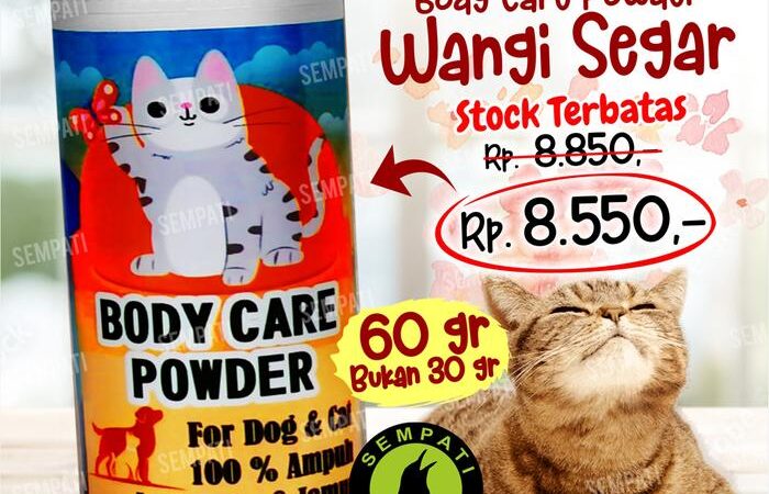 | Aturan Pakai | Taburkan secukupnya pada tubuh kucing/anjing, ratakan ke area yang diinginkan. Ulangi 1-2x sehari hingga gejala membaik. |