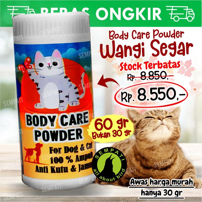 | Aturan Pakai | Taburkan secukupnya pada tubuh kucing/anjing, ratakan ke area yang diinginkan. Ulangi 1-2x sehari hingga gejala membaik. |