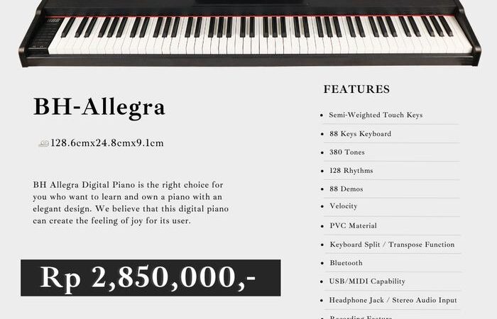 - Weighted Touch Keys: Tombol keyboard yang mensimulasikan berat dan responsivitas piano akustik.
