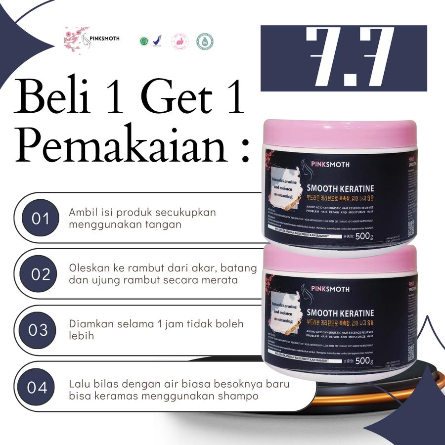Rasakan transformasi rambut Anda dengan Smooth Keratine 500ml dari Smoting Haircare! Formula keratinnya bekerja secara optimal untuk menutrisi, menghaluskan, dan mengontrol minyak berlebih. Cocok bagi yang menginginkan rambut kuat tanpa risiko rapuh atau rontok. Dapatkan promo spesial Beli 1 Get 1 tanpa syarat tambahan dan nikmati perawatan rambut premium dengan sertifikasi BPOM.