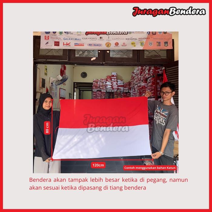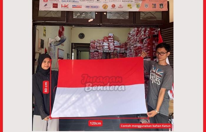 Bendera Merah Putih ukuran 80×120 cm ini diproduksi dengan standar rasio 3:2 sesuai Peraturan Pemerintah RI No. 40 Tahun 1958. Terbuat dari bahan berkualitas tinggi, bendera ini memiliki warna cerah dan tahan lama, cocok untuk dikibarkan di rumah, instansi, atau acara kenegaraan.