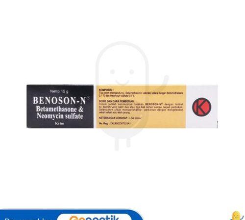 | Deskripsi | Benoson N Cream adalah obat topikal untuk mengatasi infeksi kulit yang disertai bakteri. Penggunaan harus sesuai petunjuk dokter. |