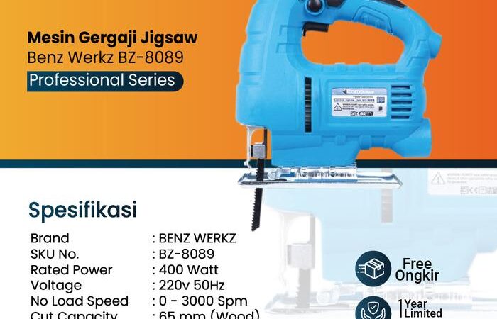 Tingkatkan efisiensi dan presisi pekerjaan kayu Anda dengan Benz Electric Jigsaw. Mesin gergaji serbaguna ini didesain untuk memotong berbagai material kayu, mulai dari triplek hingga balok kayu solid dengan ketebalan hingga 65 mm. Dilengkapi fitur Variable Speed 1-6, Anda memiliki kendali penuh atas kecepatan potong dari 0 hingga 3000 SPM untuk menyesuaikan dengan berbagai jenis material dan kebutuhan potong.