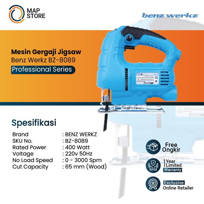 Tingkatkan efisiensi dan presisi pekerjaan kayu Anda dengan Benz Electric Jigsaw. Mesin gergaji serbaguna ini didesain untuk memotong berbagai material kayu, mulai dari triplek hingga balok kayu solid dengan ketebalan hingga 65 mm. Dilengkapi fitur Variable Speed 1-6, Anda memiliki kendali penuh atas kecepatan potong dari 0 hingga 3000 SPM untuk menyesuaikan dengan berbagai jenis material dan kebutuhan potong.