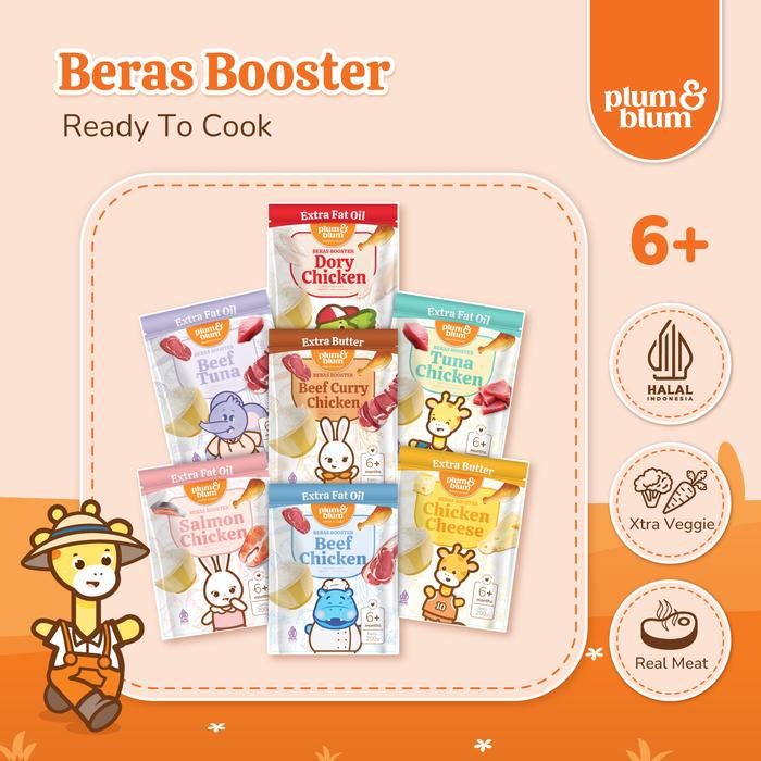 Solusi praktis MPASI bergizi untuk si kecil! Plumandblum menghadirkan Beras Booster yang kaya nutrisi, cocok untuk bayi sejak 6 bulan. Lengkap dengan karbohidrat, protein, sayuran, dan ekstra lemak sehat, tanpa ribet memasak.