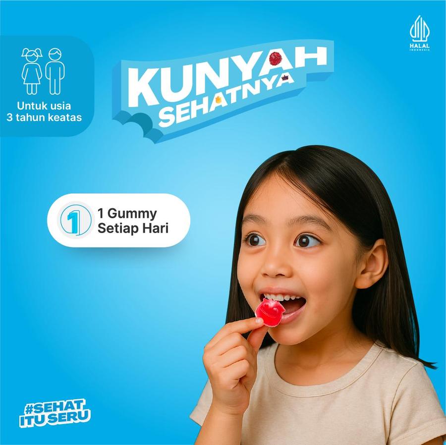 | 1 gummy/hari | ✔ Kemasan portable & higienis | ✔ Bantu anak tetap aktif |