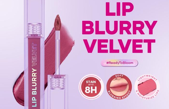 | Lip Blurry Velvet | 1 | Tekstur velvety ringan, tahan hingga 8 jam, melembapkan dengan Stevia Extract, Grapeseed Oil, dan Shea Butter. | Pilih 1 dari 6 shade: Iris, Rose, Daisy, Peony, Lilac, Orchid |