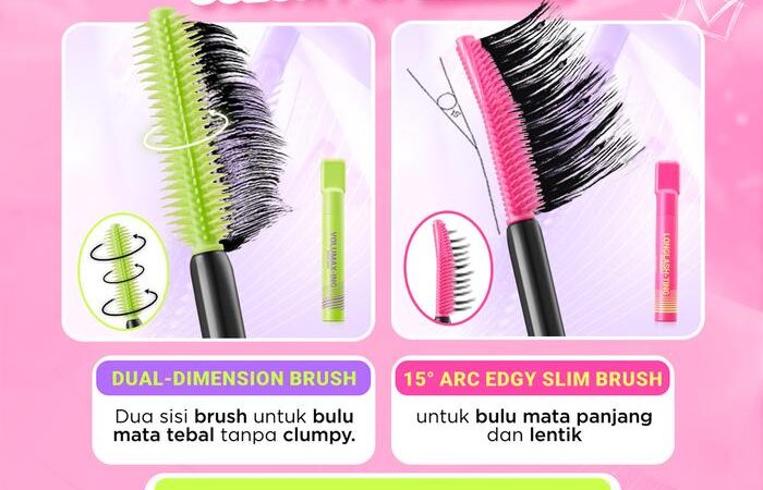 | Brush Design | Dual-Dimension Brush – menciptakan bulu mata terpisah tanpa gumpal | 15° Arc Slim Brush – membentuk bulu mata ekstra lentik dan panjang |