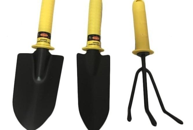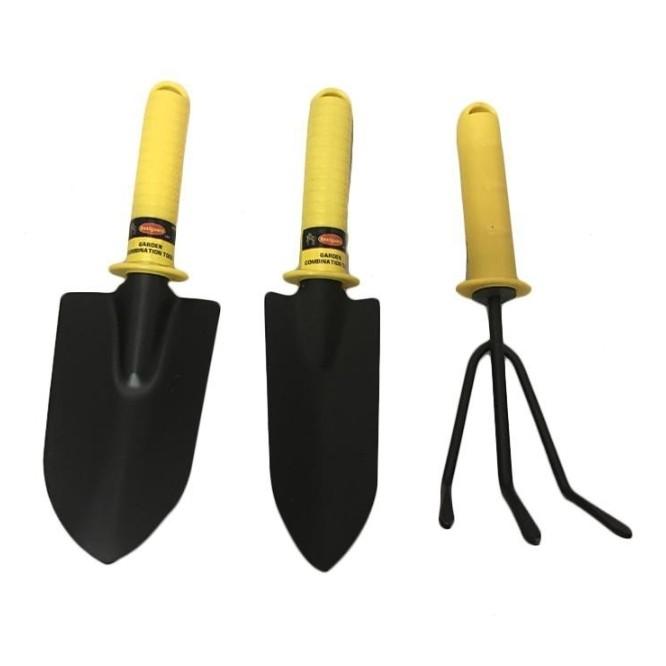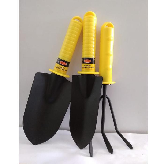 | Isi Paket | 2 Buah Sekop Mini + 1 Buah Garu Tangan |